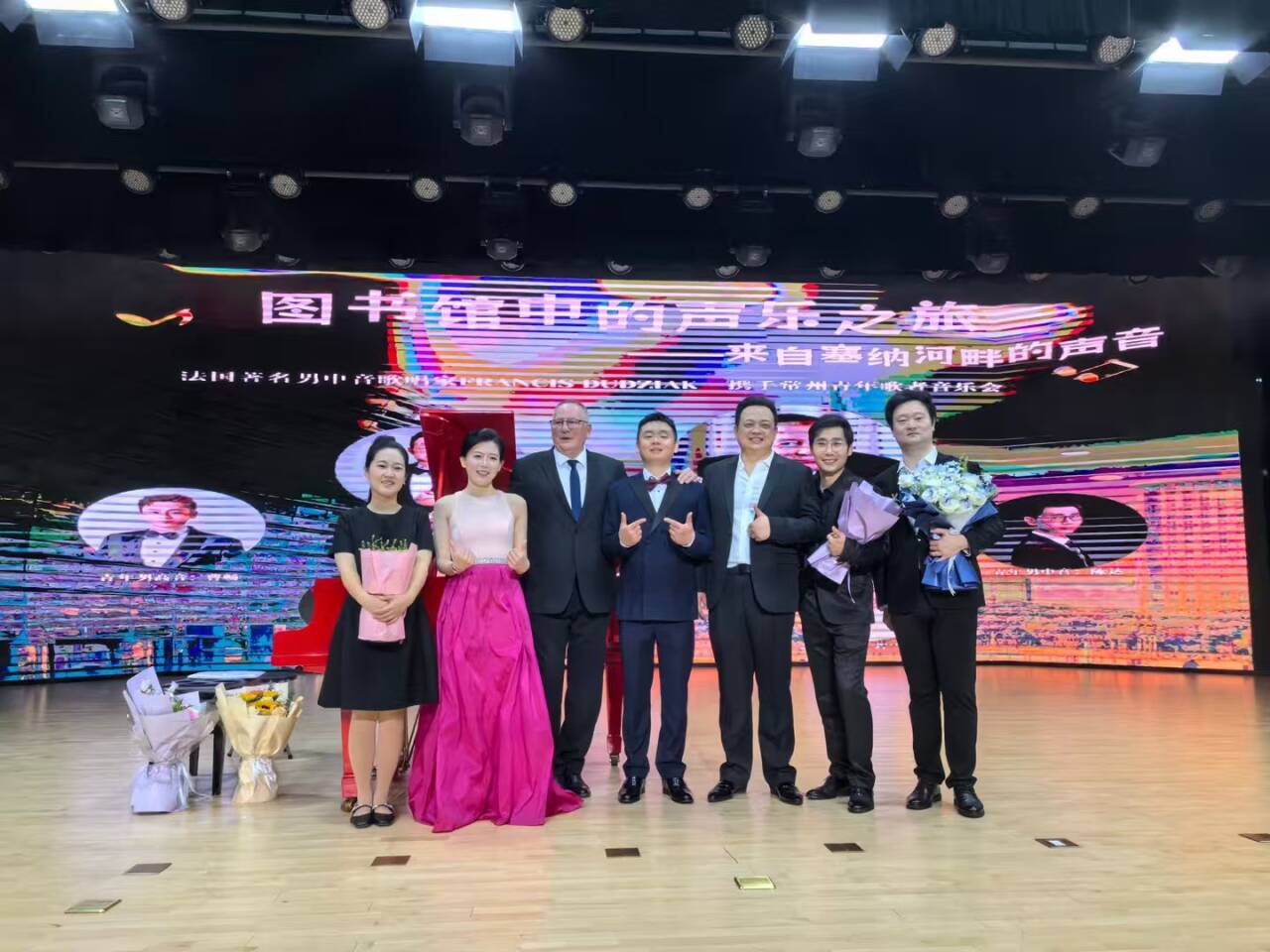 4月20日晚,法国著名男中音弗朗西斯·杜齐亚科携手常州青年歌者音乐会在常州市图书馆多功能音乐厅举行。此次演出不仅是弗朗西斯·杜齐亚科(Francis Dudziak)继2018年中国巡演后的再度亮相,更特邀我院青年博士陈达、周鹏同台献艺,以音乐为纽带深化中法文化交流,为常州市民呈现了一场跨越国界的艺术盛宴。