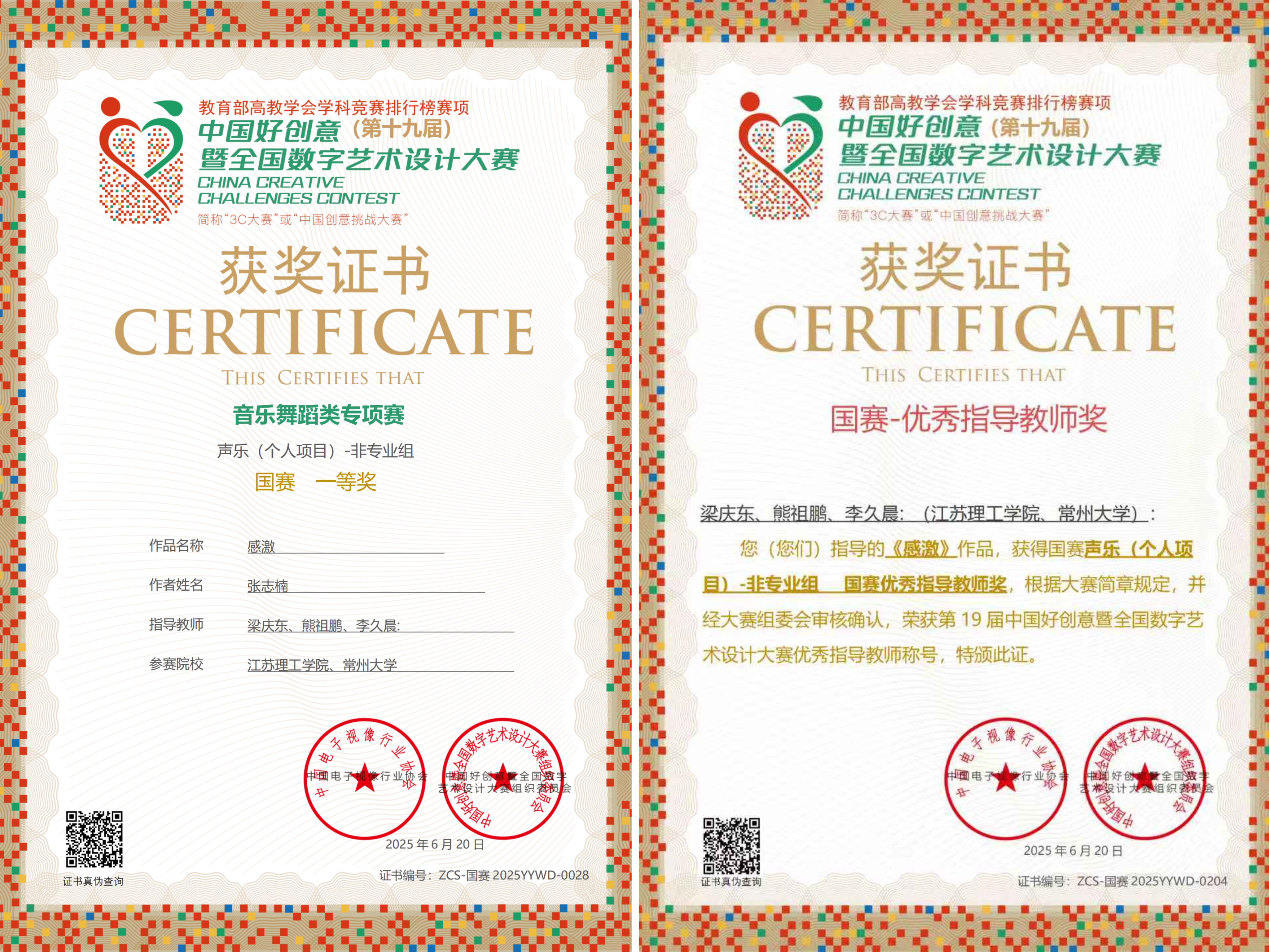 在刚刚落下帷幕的中国好创意(第十九届)暨全国数字艺术设计大赛(简称“3C大赛”,入选教育部《全国普通高校学科竞赛分析报告》)中,教育学院“青年之声”学生实践团表现出色,凭借卓越的艺术创意与扎实的专业功底,在音乐舞蹈专项赛道上脱颖而出,荣获国家级一等奖、三等奖以及多项指导教师奖项,取得了学校在这一领域的开创性成果,充分展现了我院学子在艺术创作与实践育人中的青春风采与专业实力。
