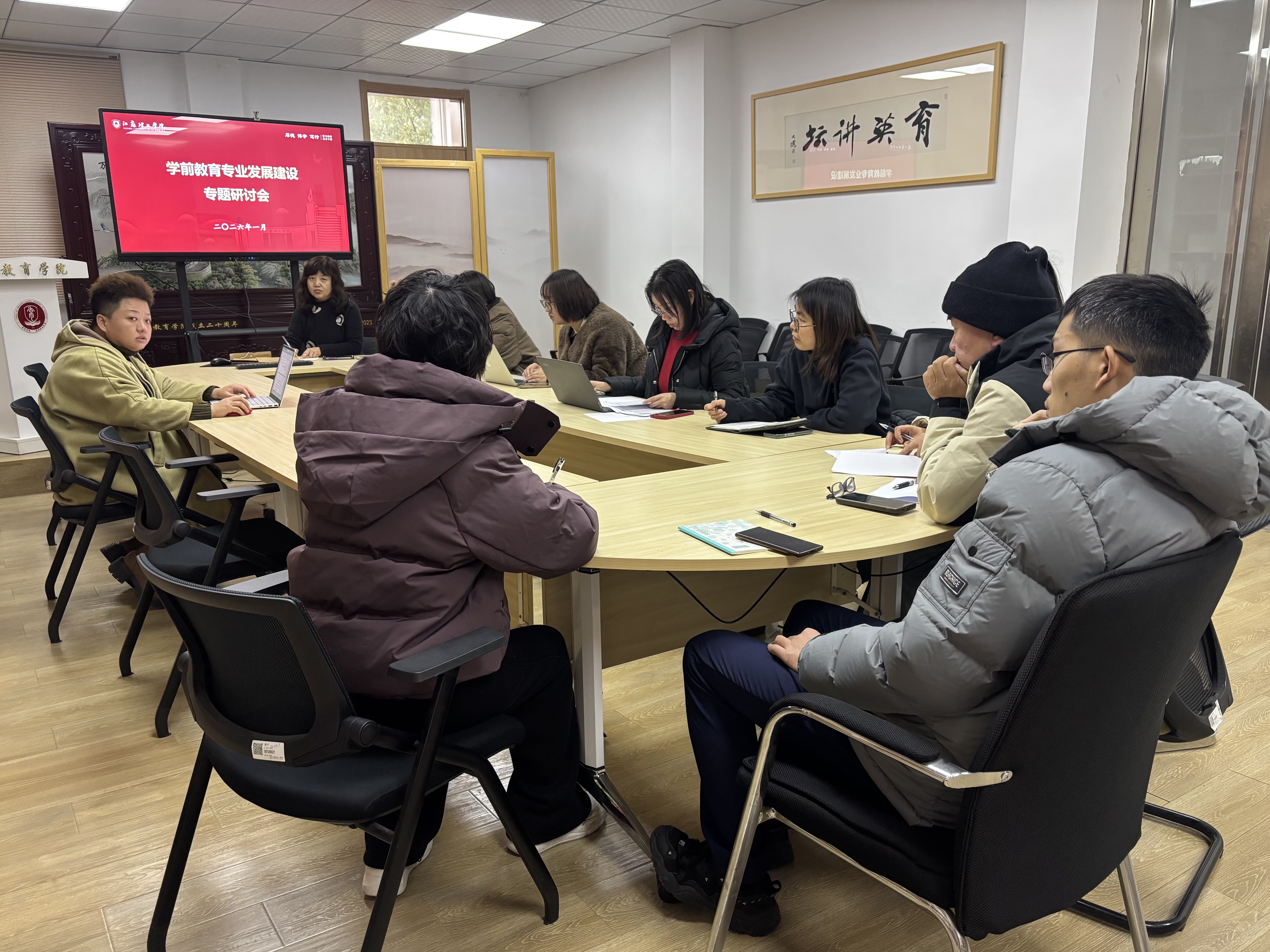 为深入学习贯彻党的二十届四中全会精神,精准落实“统筹学前教育优质普惠发展”“一体推进教育科技人才发展”的战略部署,主动对接区域学前教育行业发展新需求,1月4日下午,学院学前教育系在职师楼301会议室召开学前教育专业发展建设专题研讨会,聚焦行业发展趋势与专业建设核心议题。会议由系主任张芸芸主持。